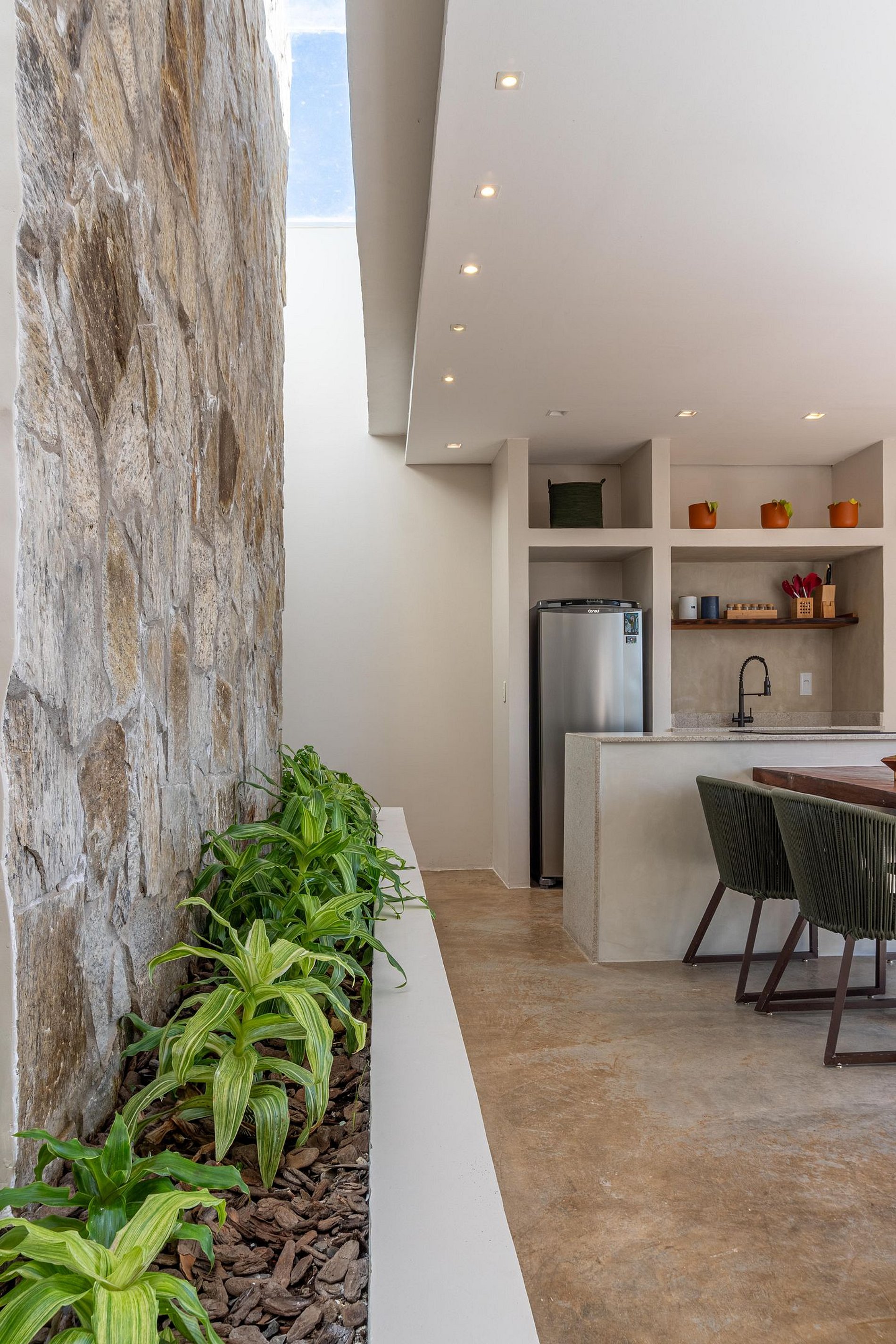 Propriedade cercada de fauna e flora nativas do Cerrado, no coração da Chapada dos Veadeiros. Nossos chalés foram idealizados para proporcionar o máximo de contato com a natureza, por isso predominam as portas, janelas e claraboias de vidro. Que preservam a iluminação natural e o verde em cada um dos espaços do nosso chalé. Temos um amplo deck de onde as montanhas do Sertão Zen podem ser admiradas, além de o mais lindo nascer do sol sobre elas. Do terraço, é possível desfrutar da vista, som das araras ou até mesmo observar o céu estrelado ao relaxar em nossa piscina privativa com aquecimento solar. A cozinha é toda equipada com cooktop, air fryer, jogos de panela, geladeira, taças de vinho e diversos utensílios de cozinha. A sala de estar foi otimizada para ser utilizada como um confortável espaço de home office, com uma incrível natureza de cenário de plano de fundo.