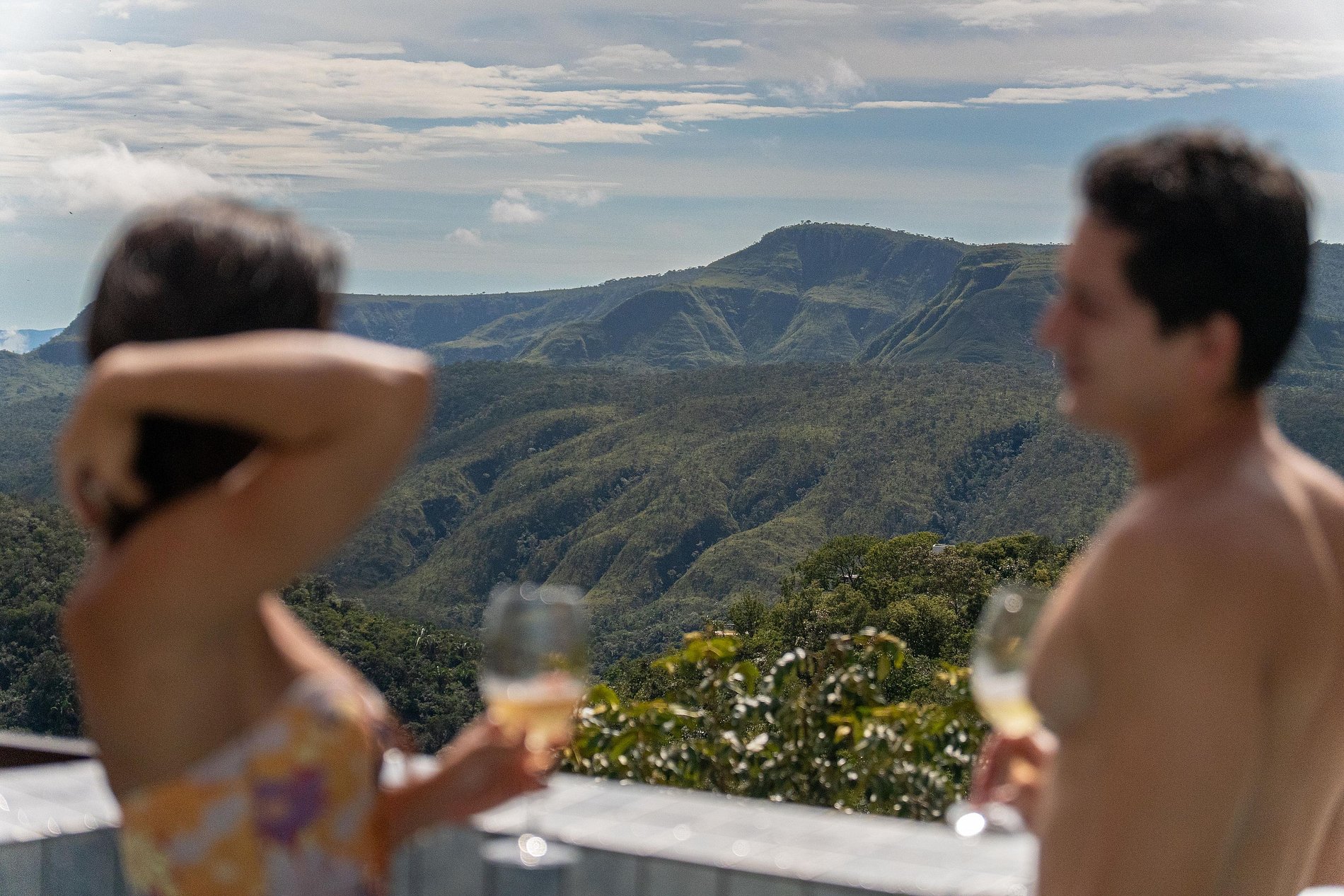 No amplo deck da propriedade, é possível contemplar as montanhas do Sertão Zen e assistir a um dos mais belos nasceres do sol da região. Do terraço, os hóspedes podem relaxar apreciando a vista, ouvindo o som das araras ou observando o céu estrelado enquanto aproveitam a piscina privativa e aquecida.